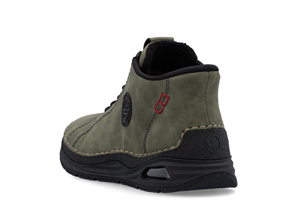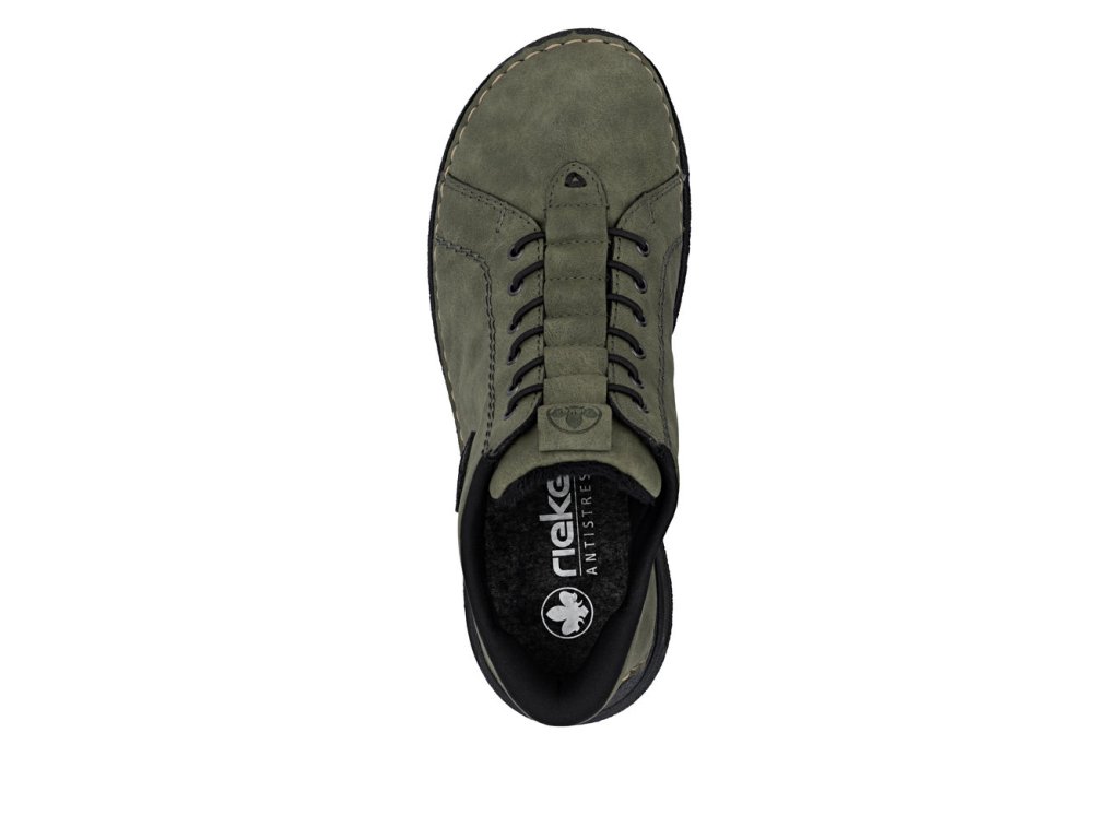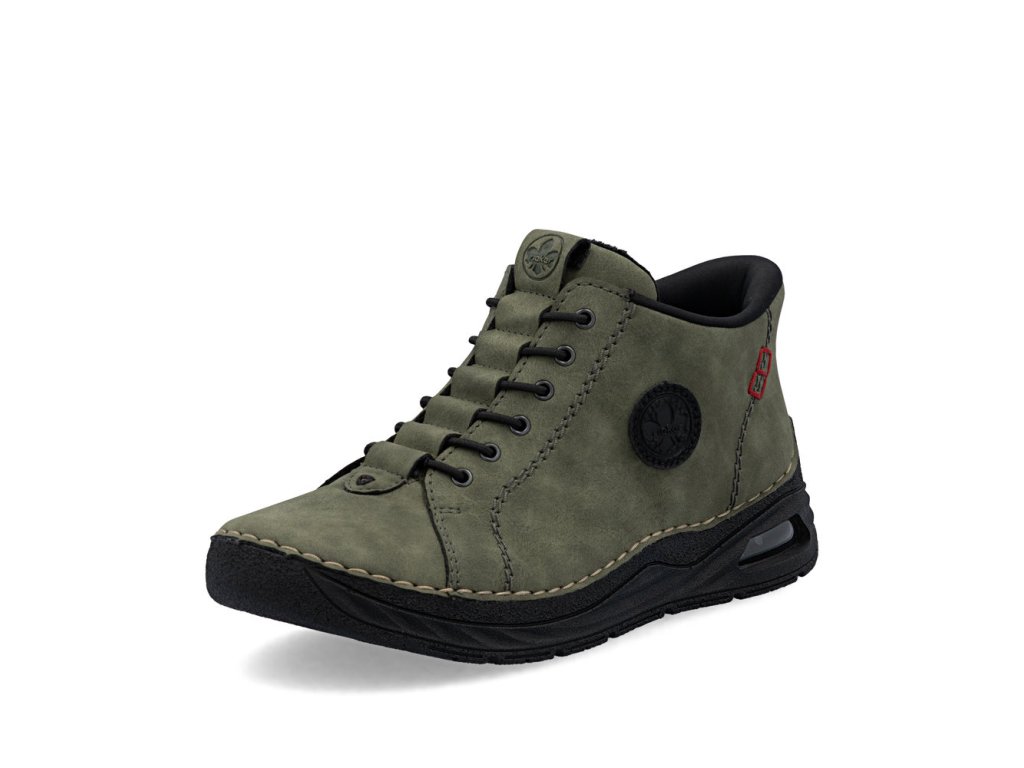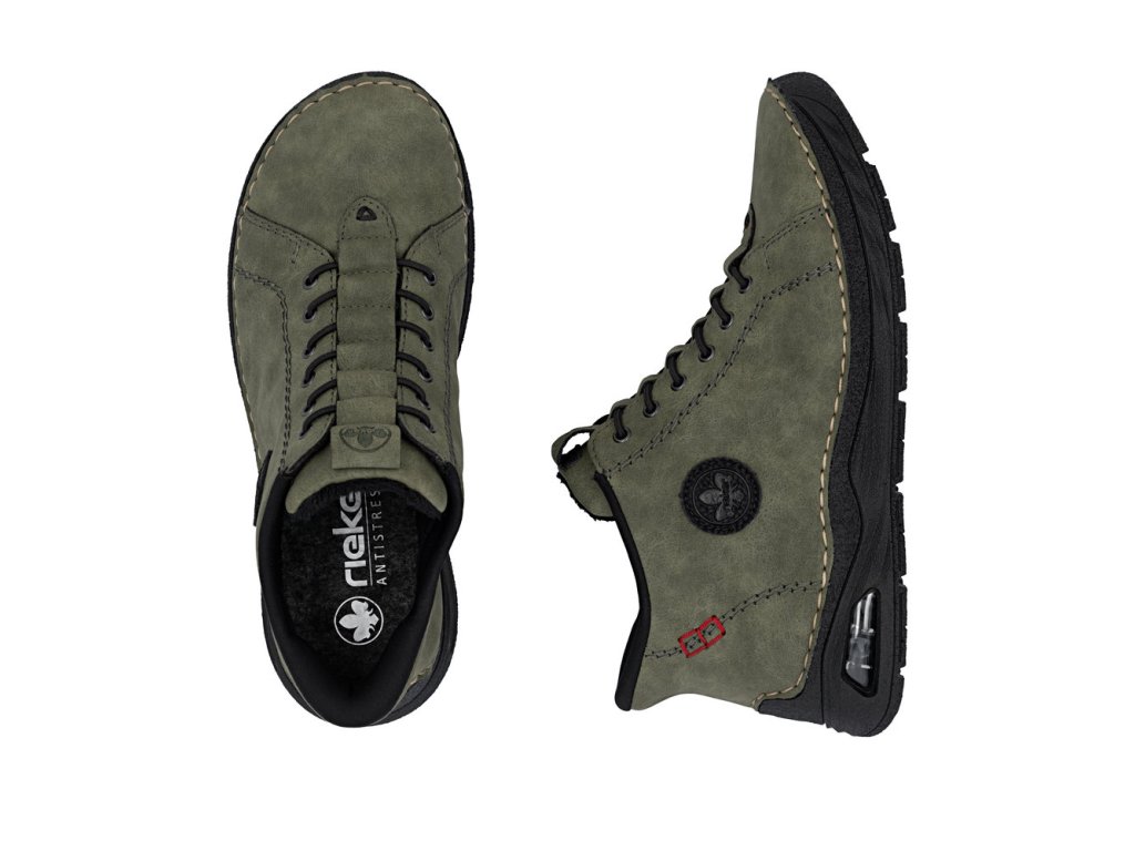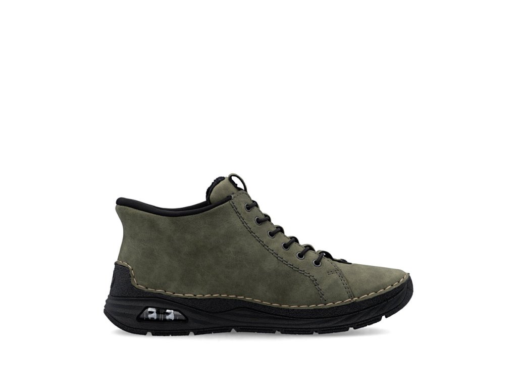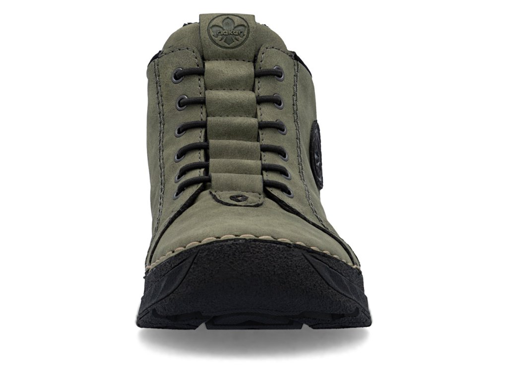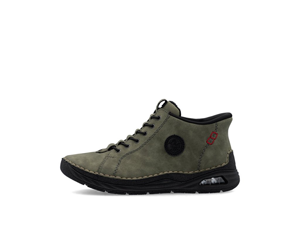 Tyto boty RIEKER v trendy zelené barvě zaujmou na první pohled vkusným designem s dekorativními liniemi prošití a výrazným logem značky. Praktické šněrování pomocí elastické gumičky umožňuje rychlé obutí – stačí do nich vklouznout a nazutím vás přivítá příjemná textilní podšívka, která se postará o pohodlí během celého dne. Flexibilní podešev se schopností tlumit nárazy zaručuje měkký došlap a komfort při každém kroku. Díky praktickému designu a zajímavé barvě jsou tyto boty ideální volbou pro běžné dny, kdy se chcete cítit dobře a vypadat stylově.