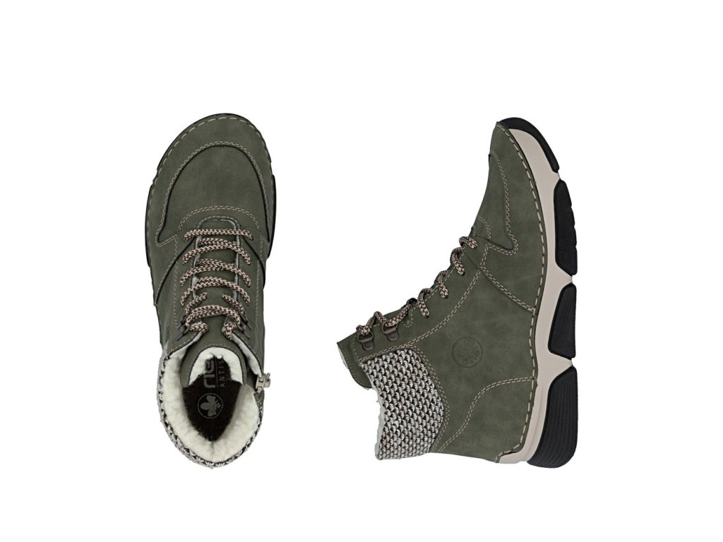 Tyto zimní boty RIEKER zajímavé zelené barvy zaujmou svým moderním vzhledem a funkčními prvky, které oceníte během chladného období. Svršek je oživen prošíváním a stylovým textilním lemem u kotníku, který působí hřejivě i na pohled. Vnitřek boty je vybaven hřejivým zateplením pro maximální komfort, zatímco kombinace šněrování a vnitřního zipu usnadňuje obouvání a zaručuje dobré přizpůsobení chodidlu. Celodenní komfort každým krokem zajistí nárazy tlumící podešev, která navíc svým designem podtrhuje módní vzhled. Skvělá volba pro ženy, které hledají zimní obuv s osobitým stylem a důrazem na pohodlí.