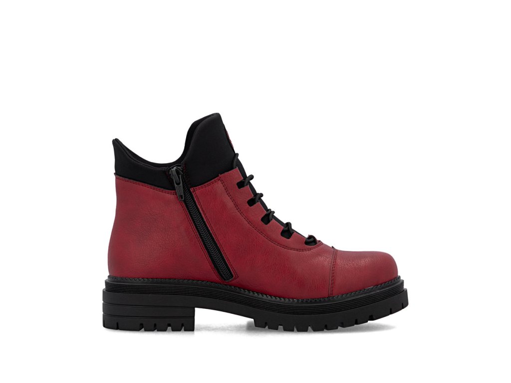 Červené kotníkové boty s atraktivním designem kombinují styl, pohodlí a praktické funkce, díky čemuž jsou ideálním doplňkem do každého šatníku. Svršek v efektní materiálové i barevné kombinaci je vybaven nepromokavou membránou, která spolehlivě chrání nohy před vlhkostí a nepříznivým počasím. Pro snadné obouvání a perfektní přizpůsobení tvaru chodidla je bota opatřena bočním zipem, flexibilním černým materiálem a praktickým elastickým šněrováním gumičkou. Tyto prvky zajišťují, že se bota přizpůsobí individuálním potřebám každé nohy a zároveň pevně drží, což oceníte při každodenním nošení. Uvnitř boty je měkká stélka a hřejivá podšívka, která poskytuje pohodlí a teplo i při chladnějším počasí. Podešev je navržena s využitím technologie Antistress, díky čemuž je lehká, flexibilní a absorbuje nárazy při došlapu, čímž chrání klouby a přispívá k přirozenému pohybu chodidla. Tyto kotníkové boty jsou ideální volbou pro ženy, které hledají styl, praktičnost a komfort v jednom. Zaručují pohodlné nošení za každého počasí, bezpečný krok a módní vzhled, který zaujme při každé příležitosti.