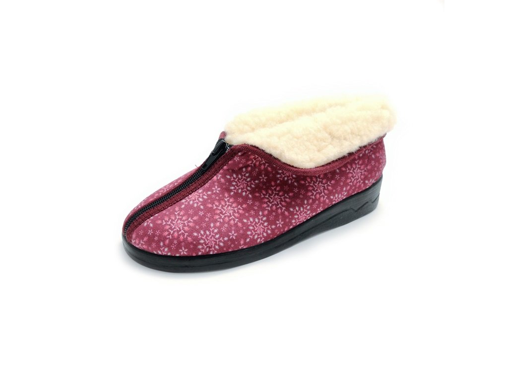Dámské bačkory s anatomicky tvarovanou stélkou a podrážkou z PU, která má odlehčenou podešev. Bačkory jsou uzavřené, s ohrnutým horním lemem a zateplené vlnou. Díky celorozepínací špičce se boty velmi dobře nazouvají.