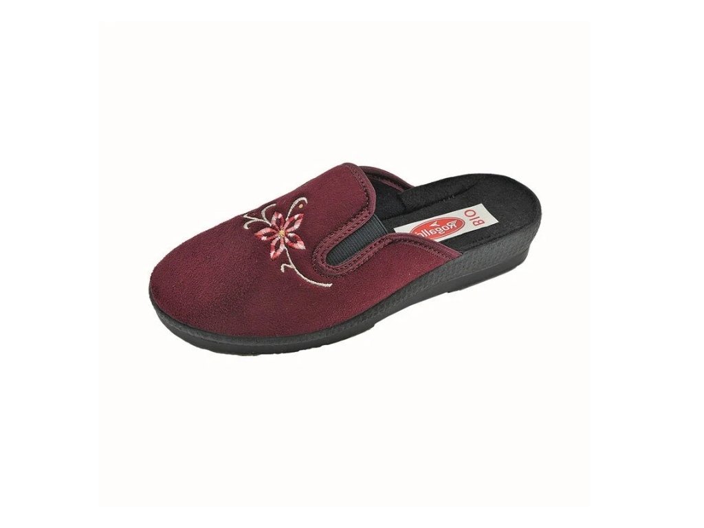 Domácí pantofle s uzavřenou špičkou s anatomicky tvarovanou stélkou a odlehčenou podrážkou z PU. Svršek bačkory z textilního materiálu, na stranách opatřen gumičkami pro pohodlné prozutí. Lehké a ohebné. Vyrobeno v ČR