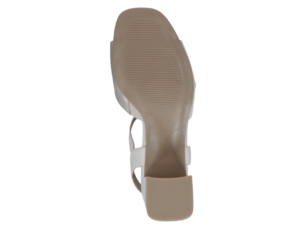 Dominantou těchto lodiček je nadčasová krémově bílá barva, kterou v přední části doplňuje vkusné křížení pásků. Jeden z nich vyniká jemným stříbřitým odleskem, což botám dodává luxusní nádech a usnadňuje kombinování s šperky i doplňky.