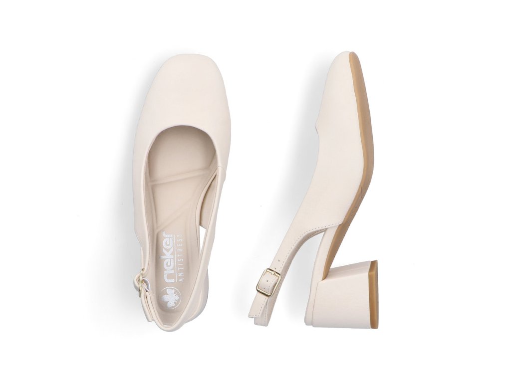 Tyto lodičky RIEKER s volnou patou představují moderní a pohodlnou obuv, s jednoduchým svrškem jsou tyto lodičky skvělou volbou pro univerzální doplněk vašeho šatníku. Zapínání sponou v zadní části umožňuje snadné obouvání a poskytuje pohodlné upevnění na noze, což je ideální pro celodenní nošení. Měkká stélka a nízký podpatek poskytují optimální pohodlí ideální pro každodenní nošení. Tato obuv kombinuje eleganci s pohodlím, což je skvělá kombinace pro různé příležitosti.