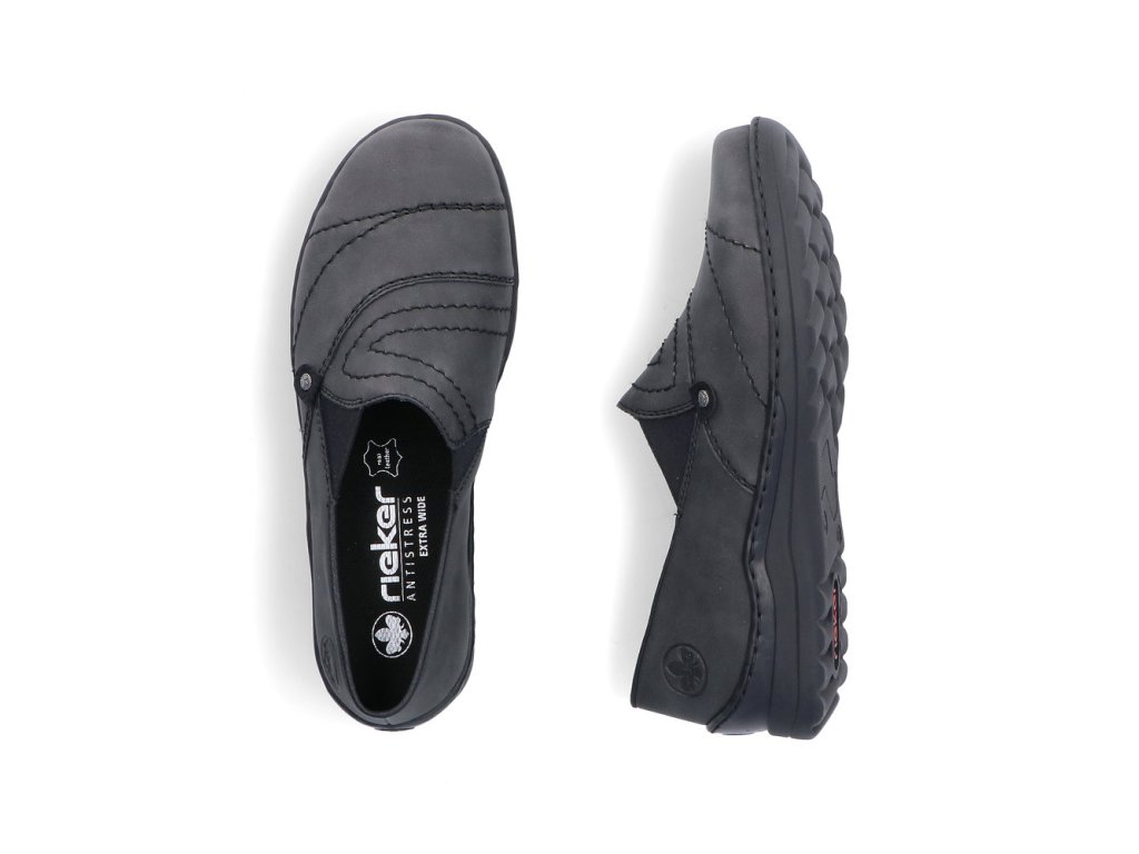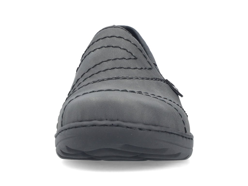 Mokasíny značky RIEKER jsou skvělým příkladem toho, jak může i jednoduchý design působit mimořádně stylově a zároveň nabídnout vysoký komfort při každodenním nošení. Šedý svršek působí nadčasově a velmi jednoduše se kombinuje s různým oblečením. Vzhled obuvi zvýrazňuje dekorativní prošívání, které dodává botám jedinečný charakter a vytváří dynamické linie. Pro maximální pohodlí při obouvání jsou po obou stranách nártu umístěny všité pružné gumičky. O příjemný krok se stará flexibilní podešev, navržená tak, aby účinně tlumila nárazy a zajistila měkký a přirozený došlap. Interiér bot je vybaven měkkou a příjemnou textilní stélkou, která poskytuje pohodlí již při prvním obutí. Díky svému univerzálnímu vzhledu, praktickému zpracování a pohodlné konstrukci se tyto boty stanou spolehlivým společníkem pro každý den. Perfektně zapadnou do šatníku moderní ženy, která preferuje kvalitu, styl a komfort v jednom.