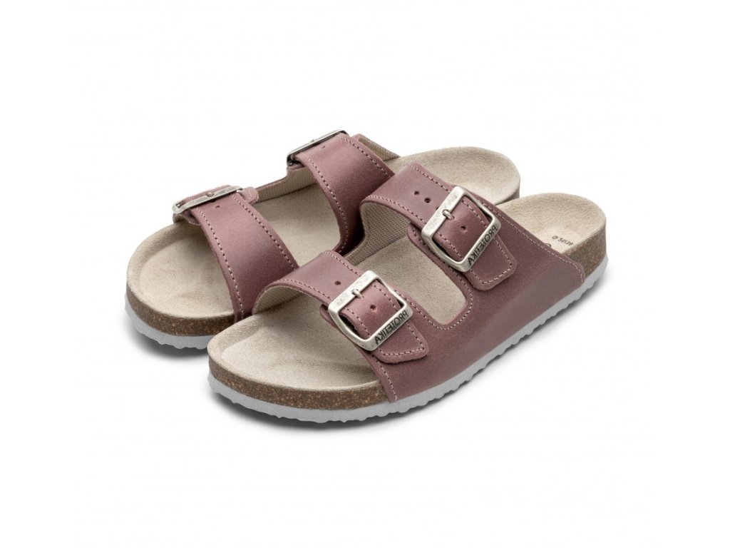 Rehabilitační obuv pro dospělé se zdravotními prvky má preventivní i relaxační účinky – podporuje správné držení nohou a poskytuje úlevu po celodenní zátěži.Sandály mají dvoupřezkové zapínání, které umožňuje rychlé a pohodlné přizpůsobení dle potřeby. Svršek je vyroben z kvalitní přírodní kůže a anatomicky tvarovaný výlisek je z přírodního korku. Stélka s širokou prstovou částí a patním lůžkem zajišťuje přirozené rozložení váhy těla a stabilitu chodidla při chůzi. Podpora příčné a podélné klenby chodidla aktivně přispívá k prevenci plochonoží.• Sandály mají anatomicky tvarovaný výlisek, který eliminuje ortopedické obtíže.• Odolná podešev s protiskluzovou úpravou zaručuje stabilitu a bezpečný krok na každém povrchu.• Sandály jsou vyrobeny z certifikovaných, kvalitních přírodních materiálů.