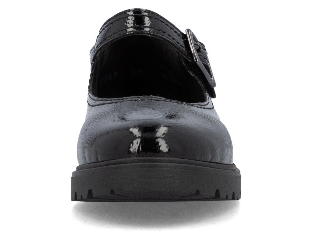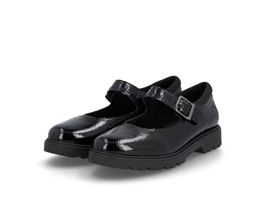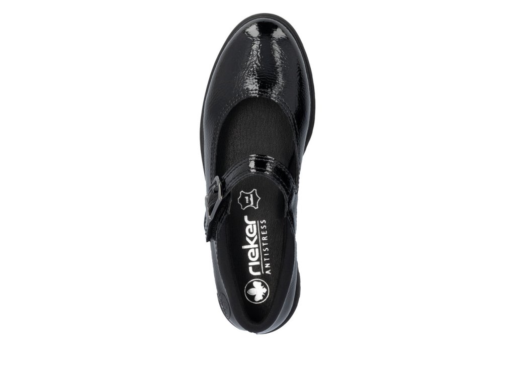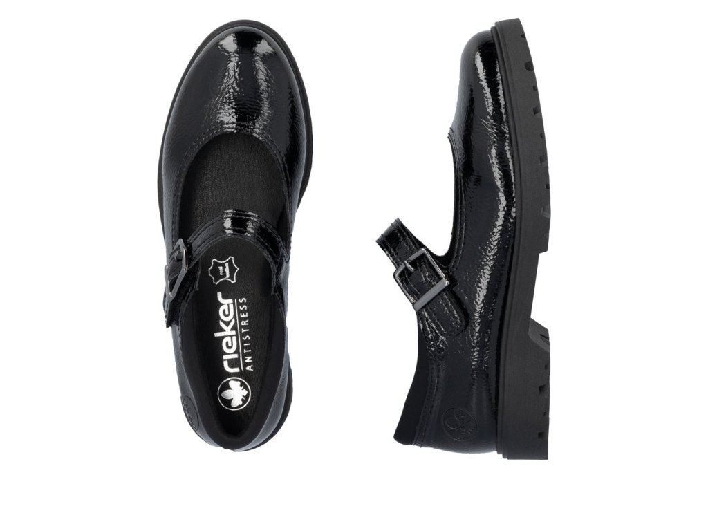 Tyto boty RIEKER v lesklé černé barvě zaujmou elegantním designem a výrazným páskem přes nárt, který je opatřen praktickou sponou se suchým zipem pro dokonalé přizpůsobení boty noze. Kožená stélka poskytuje maximální komfort během celého dne, zatímco mohutnější podešev zaručuje stabilitu a pohodlí při chůzi. Tento model je skvělou volbou pro ženy, které hledají stylové, pohodlné a praktické boty pro každodenní nošení.