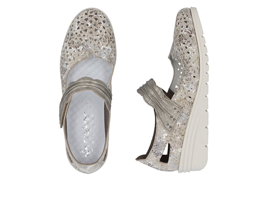 Dodejte svému jarnímu a letnímu šatníku šmrnc s těmito designovými polobotkami značky Rieker. Tento model mistrně kombinuje eleganci metalických odlesků s maximální funkčností, kterou od Rieker očekáváte. Jsou ideální volbou pro ženy, které tráví celý den na nohou, ale odmítají slevit ze svého stylu.