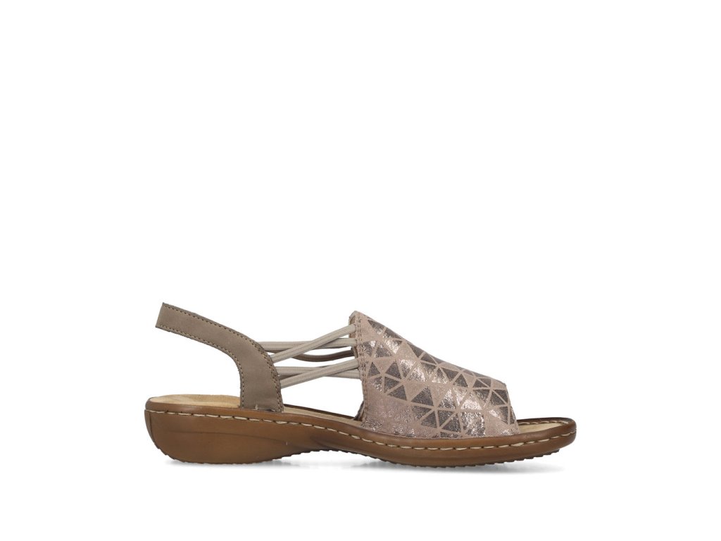 Sandály RIEKER se stanou skutečnou ozdobou vašich nohou a dodají každému outfitu stylový nádech. Přední široký pásek je ozdoben atraktivním vzorem s jemnými odlesky, které obuvi dodávají jedinečný a stylový charakter. Praktické boční gumičky zajišťují snadné obouvání a pevný zadní pásek poskytuje potřebnou oporu při chůzi, takže se můžete cítit pohodlně po celý den. Příjemná textilní stélka je měkká na dotek a podešev účinně tlumí nárazy při chůzi, tato kombinace přispívá k celkovému komfortu při nošení. Tyto sandály RIEKER jsou ideální volbou pro letní dny – skvěle doplní šaty, sukně i ležérní outfity a poskytnou vám pohodlí i styl v jednom.