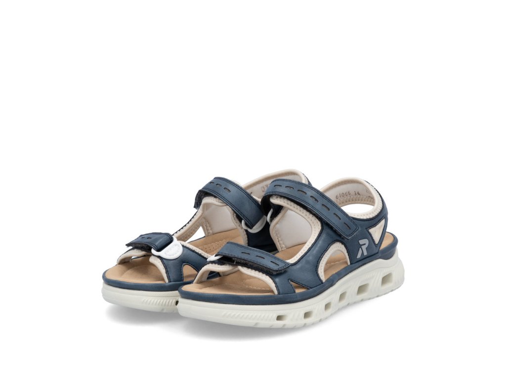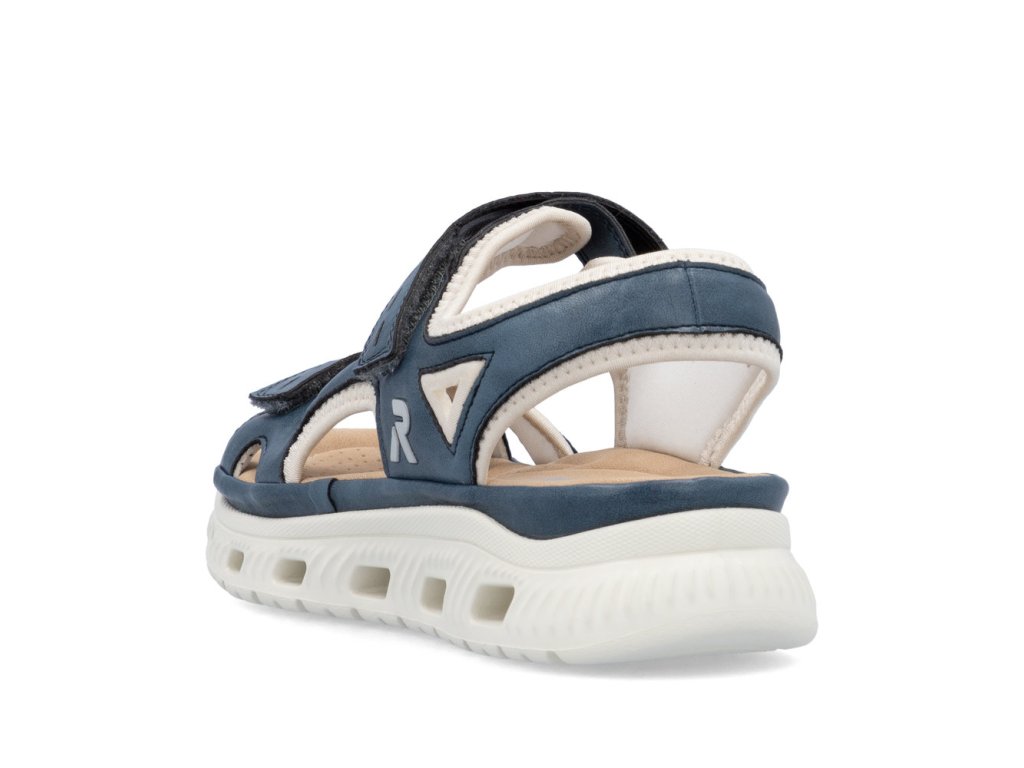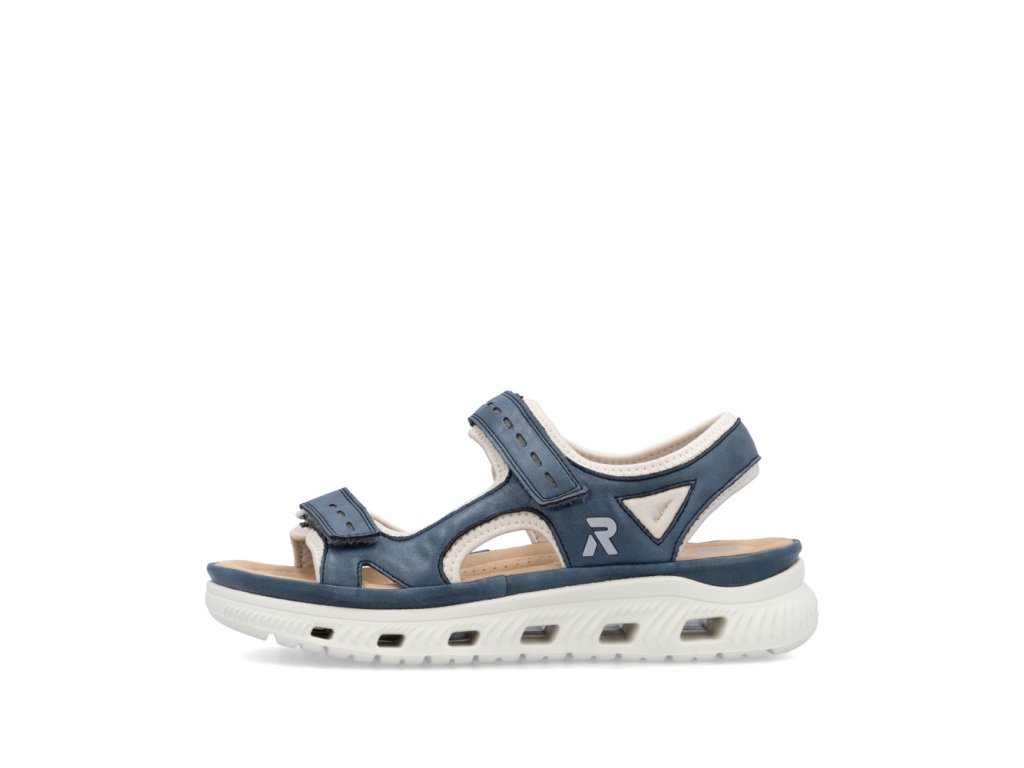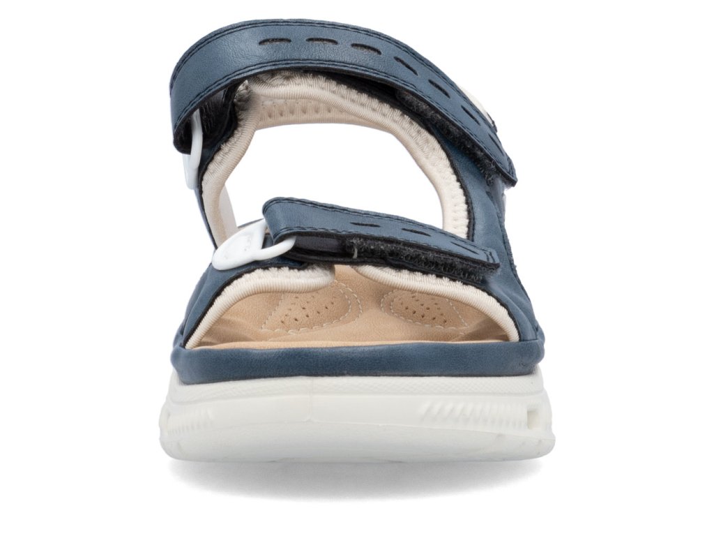 Oživte svůj sportovně-ležérní styl sandály značky RIEKER, které dokonale spojují moderní design s typickým komfortem, na který se můžete spolehnout během celého dne. Modrý svršek působí svěže, přičemž jeho podšití světlým textilním materiálem vytváří zajímavý kontrast a zároveň poskytuje příjemný pocit při nošení. Praktické pásky se suchým zipem umožňují snadné obouvání i individuální nastavení podle potřeb. Tvarovaná stélka poskytuje optimální oporu chodidlu a svým materiálem poskytne příjemný došlap. Výrazným prvkem je unikátní, flexibilní podešev, která se přizpůsobuje chůzi, tlumí nárazy a zároveň svým moderním vzhledem podtrhuje sportovní charakter tohoto modelu. Tyto sandály jsou ideální volbou pro každodenní nošení - do města, na procházky, cestování či volnočasové aktivity. Dokonalá souhra moderního vzhledu a maximálního pohodlí díky funkčním technologiím to jsou boty RIEKER Sport.
