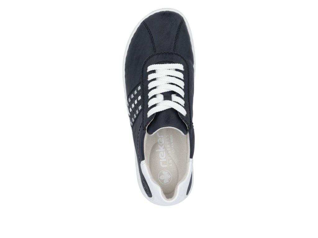 Tyto stylové tenisky od značky RIEKER jsou ideálním doplňkem pro každý šatník a spojí moderní vzhled s vysokým komfortem. Tmavě modrý svršek je doplněn kontrastními bílými částmi a jemnými odlesky dekorace boční části, které obuvi dodávají dynamický vzhled. Praktické šněrování umožňuje snadné a rychlé přizpůsobení bot tvaru vaší nohy, čímž se zajistí stabilní držení a pohodlný pocit při každém kroku. Pohodlí je u tohoto modelu na prvním místě. Měkká vyjímatelná stélka je navržena se širším střihem, který poskytuje prstům dostatečný prostor a přispívá k pocitu volnosti při každém kroku. Společně s flexibilní podešví, která tlumí nárazy a zajišťuje přirozený došlap, si můžete být jisti, že vaše chodidla zůstanou v pohodlí i při celodenním nošení. Boty jsou navrženy tak, aby se snadno kombinovaly s různými styly oblečení. S tímto modelem získáváte boty, které jsou nejen módním doplňkem, ale také spolehlivým partnerem během celého dne.