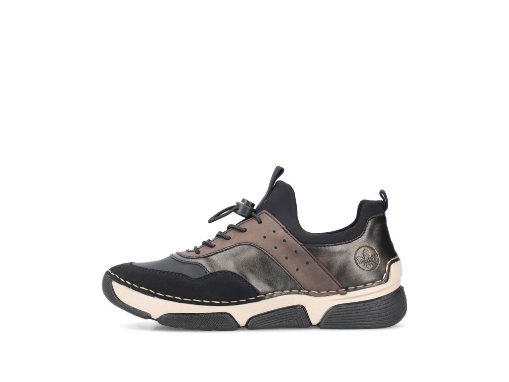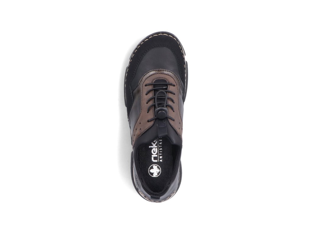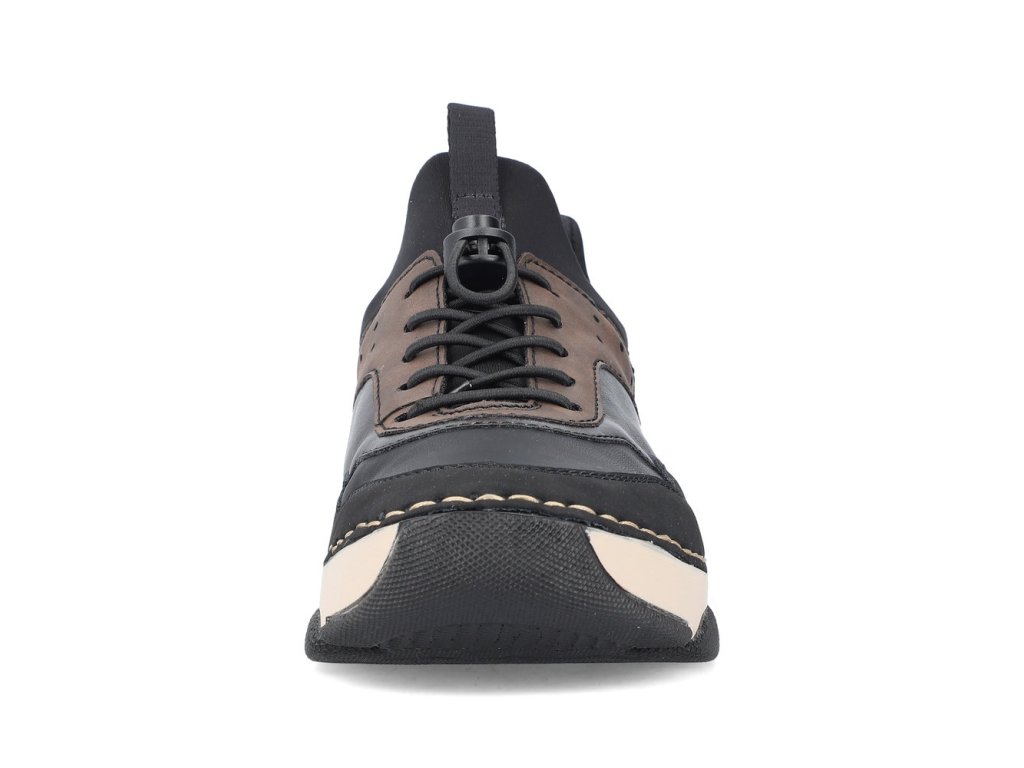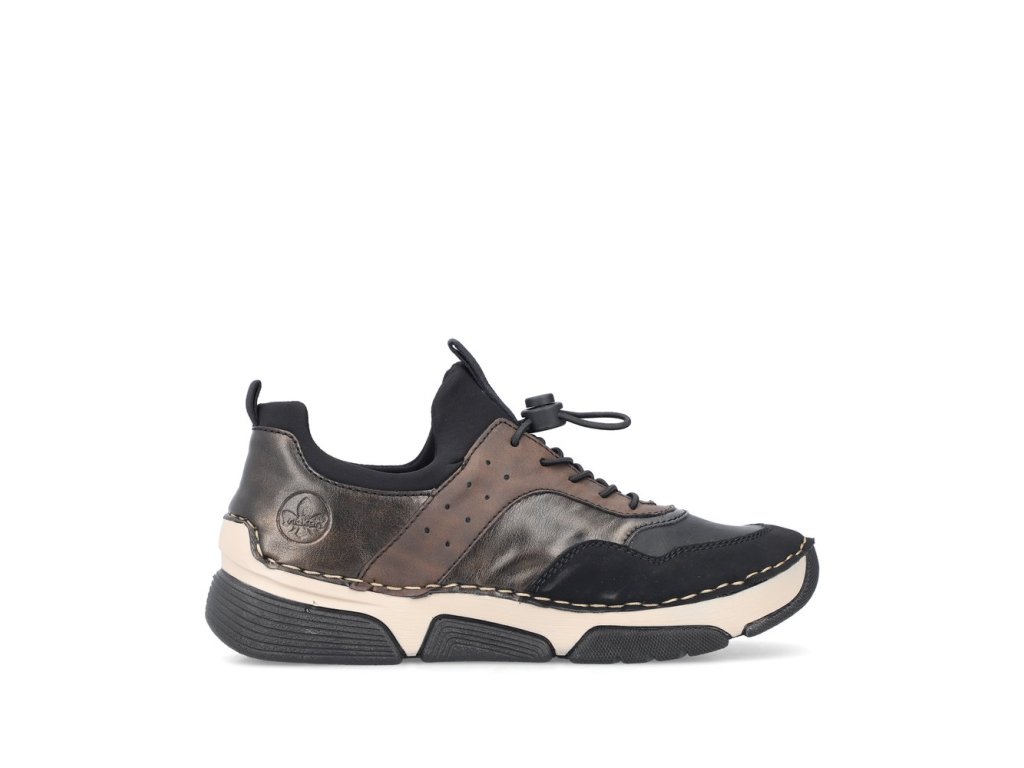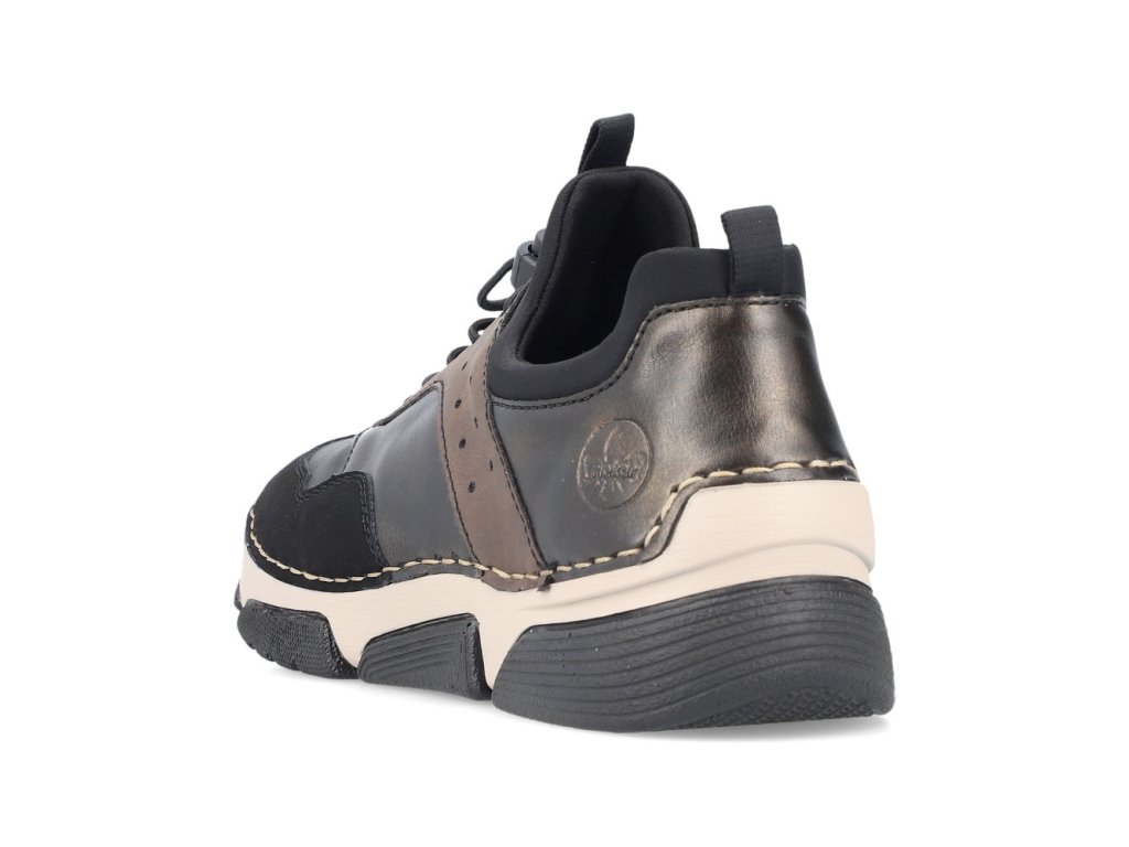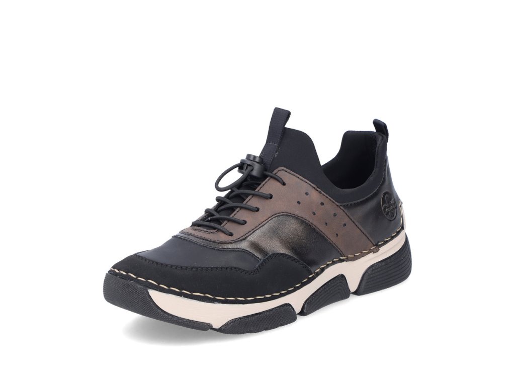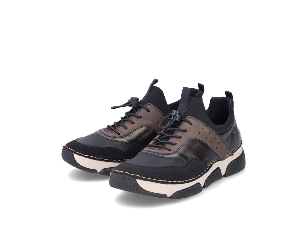 Tento nový model RIEKER přináší do vaší kolekce bot zcela nový zážitek, jeho skvostná kombinace barev a materiálů jej řadí mezi výrazné kousky obuvi. Pružný lem horního okraje a šněrování s gumičkou se stahovacím prvkem zajišťují perfektní přilnavost a pohodlí. Luxusní pocit při nošení dodává kožená stélka a podešev je navržena tak, aby tlumila nárazy při chůzi, což poskytuje další úroveň pohodlí. Jemné prošití světlou nití, které je typické pro značku RIEKER, a samozřejmě nezaměnitelné logo značky dodávají tomuto modelu nezaměnitelnou identitu a eleganci. Je to skvělá volba pro ty, kteří hledají boty, které se nebojí zaujmout a zároveň nabízí prvotřídní komfort a kvalitu.