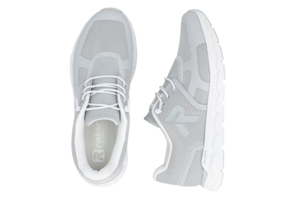 Pro ženy s aktivním životním stylem máme v nabídce tuto obuv RIEKER. Šedý svršek s unikátními prvky a designovou podešví, která nejenže zajišťuje flexibilitu při každodenním nošení, ale také dodává vašemu outfitu moderní vzhled. Praktické jsou dvě varianty šněrování – klasické šňůrky nebo pružná gumička, obě zajistí snadné obutí a přizpůsobení se tvaru vaší nohy. Měkká vyjímatelná stélka zajišťuje zpříjemnění každého kroku a podešev tlumící nárazy při chůzi je zde jako komfortní bonus. Tyto tenisky jsou skvělou volbou pro ženy, které chtějí být stylové a zároveň aktivní ve svém každodenním životě. Dokonalá souhra moderního vzhledu a maximálního pohodlí díky funkčním technologiím to jsou boty RIEKER Sport.