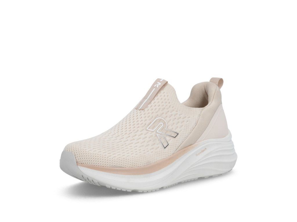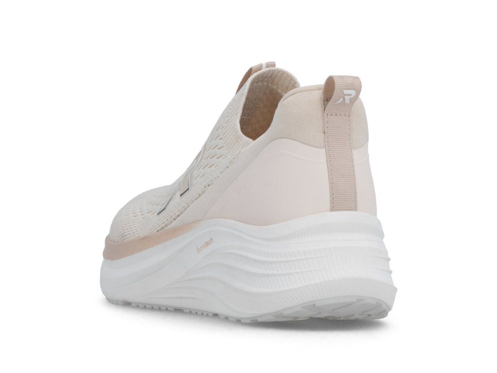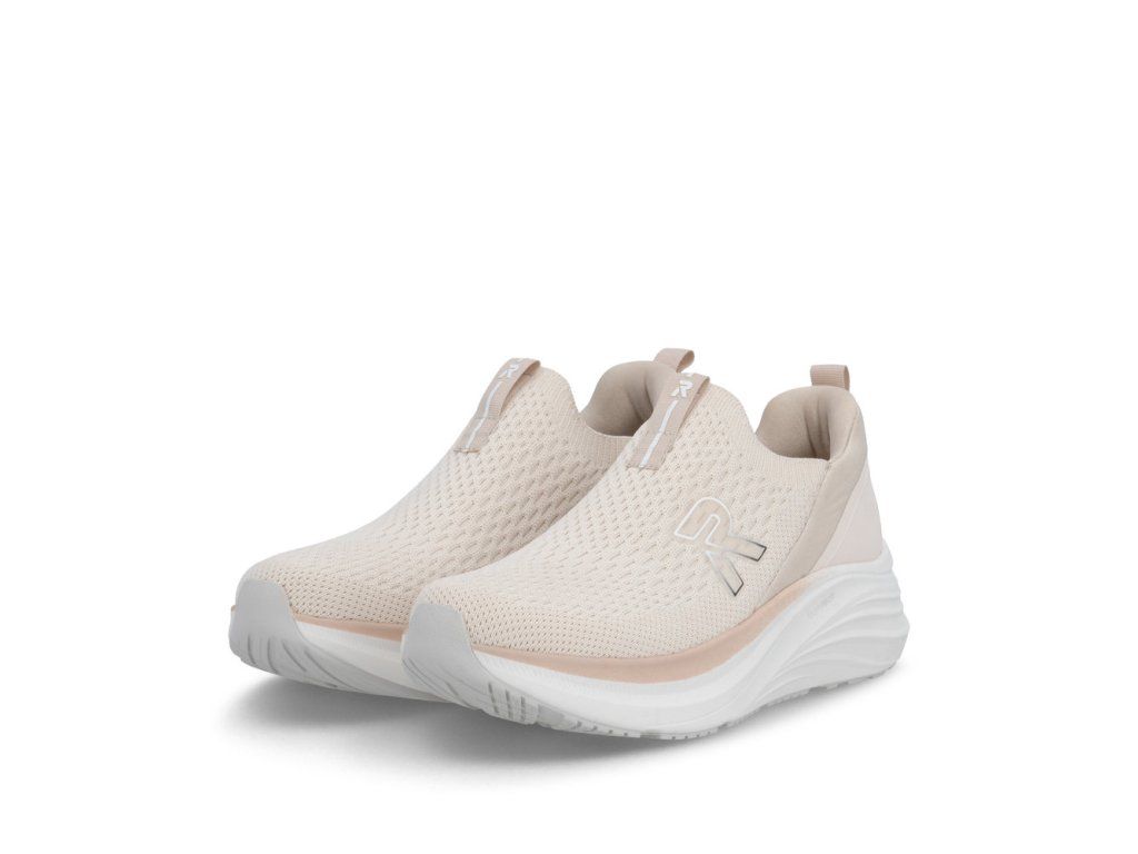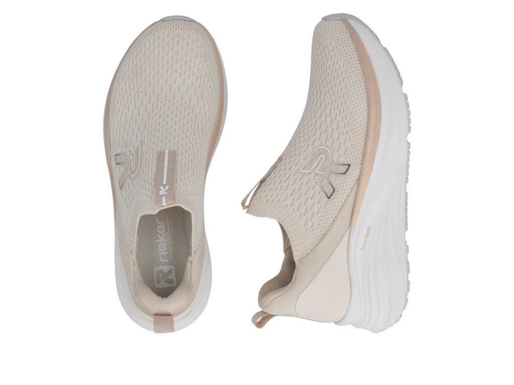 Tyto tenisky RIEKER jsou dokonalou volbou pro moderní ženy, které hledají spojení stylu a maximálního pohodlí. Béžový svršek je kombinací materiálových struktur a v kombinaci s výrazným logem značky vytváří dynamický vzhled, který okamžitě upoutá pozornost. Textilní materiál přední části tenisek se dokonale přizpůsobí tvaru vaší nohy, díky své pružnosti a prodyšnosti poskytuje dostatek volnosti a zároveň pomáhá udržovat příjemné klima uvnitř obuvi. Pružný lem horního okraje umožňuje snadné obutí a příjemné vklouznutí nohy do boty. Tenisky jsou vybaveny vyjímatelnou měkkou stélkou, která se přizpůsobí tvaru chodidla a poskytuje komfort během celého dne. Tato stélka je zároveň praktická při údržbě nebo výměně za ortopedickou stélku. Podešev je navržena tak, aby efektivně tlumila nárazy při každém kroku, zvyšovala stabilitu a zároveň dodávala botám jedinečný, stylový vzhled. Spojte moderní design, funkční detaily a maximální pohodlí – tyto tenisky se stanou vaším nepřehlédnutelným doplňkem a spolehlivým společníkem každého dne. Dokonalá souhra moderního vzhledu a maximálního pohodlí díky funkčním technologiím to jsou boty RIEKER Sport.
