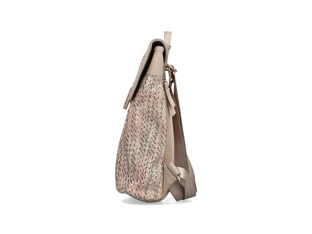 Hledáte doplněk, který bude stejně stylový jako praktický a unese s vámi celý pracovní den i víkendovou kávu v centru? Tento dámský batoh od renomované značky Rieker v sobě kombinuje eleganci jemných béžových tónů s hravostí proplétaného vzoru. Je navržen pro moderní ženu, která se nechce rozhodovat mezi designem a komfortem. Dominantou batohu je nádherná proplétaná textura v přední části, která kombinuje zemité odstíny a dodává batohu unikátní, řemeslný vzhled. Horní klopa z broušeného syntetického materiálu je zdobena decentním logem Rieker a stylovým přívěskem, což podtrhuje jeho prémiový charakter.