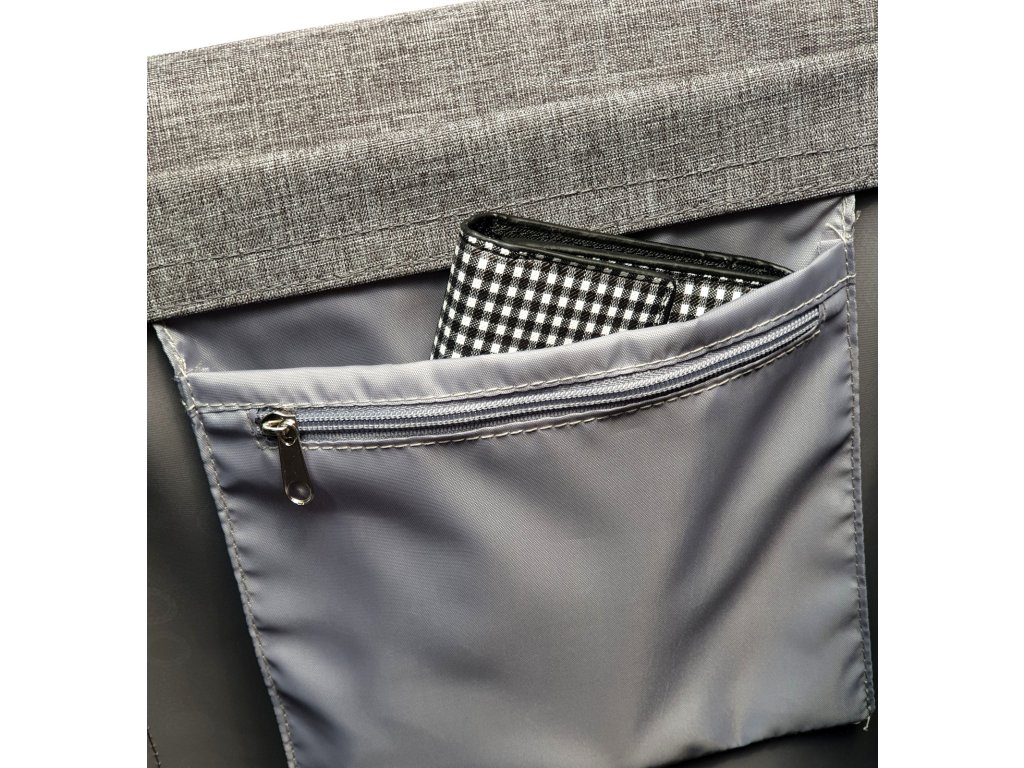 Taška je vyrobena z pevného a nepromokavého materiálu s označením Tweed, který se vyznačuje jemnou strukturou a velmi atraktivním designem. K údržbě stačí vlhký hadřík či houbička. Materiál lze také impregnovat a zajistit mu tak delší životnost.