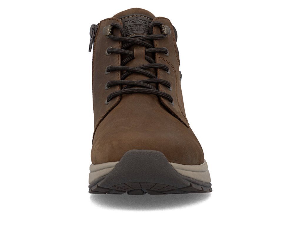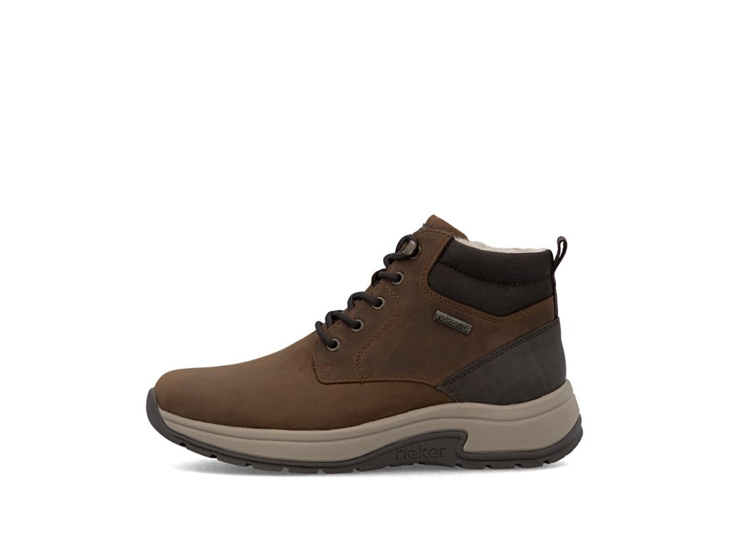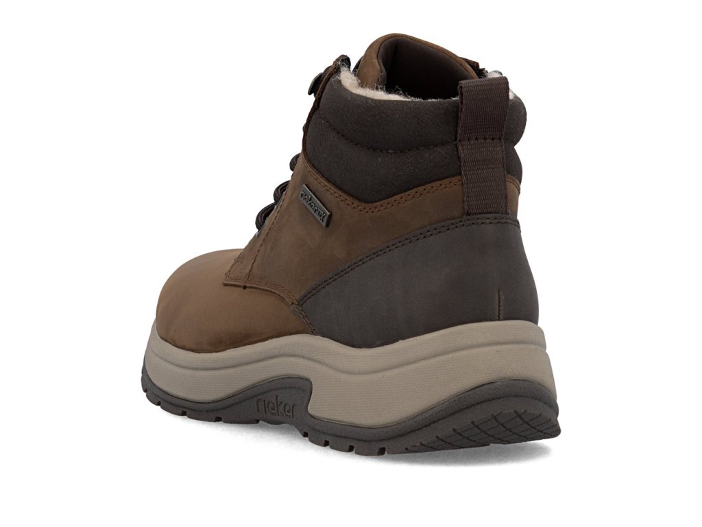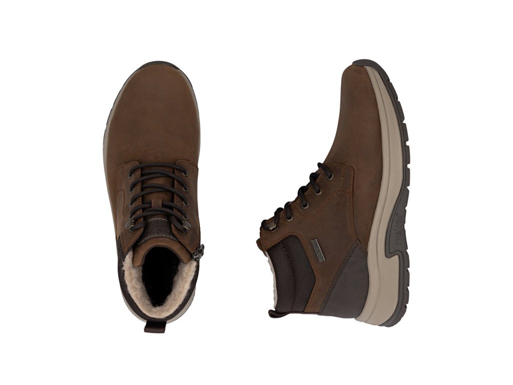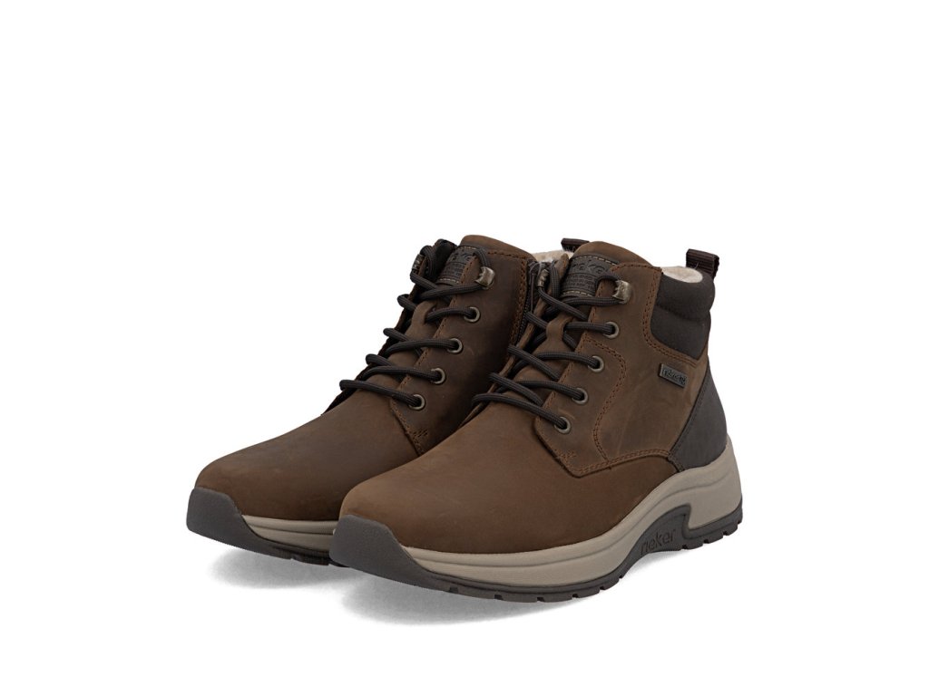 Tyto pánské boty do nepříznivého počasí od značky RIEKER jsou navrženy tak, aby vám poskytly spolehlivou ochranu, teplo a komfort během chladných a vlhkých dnů. Svršek z kombinace odolných materiálů je vybaven nepromokavou membránou, která udrží vaše nohy v suchu i při dešti či sněhu. Praktické šněrování doplněné vnitřním zipem umožňuje rychlé a snadné obouvání, uvnitř vás čeká příjemné zateplení pravou ovčí vlnou, která zaručuje výbornou izolaci proti chladu. Vyjímatelná stélka se přizpůsobí potřebám vašeho chodidla, zatímco podešev se speciální technologií tlumení nárazů poskytuje pohodlí při chůzi a zaujme také svým designem. Ideální volba pro zimu, která spojuje funkčnost, teplo a moderní vzhled.
