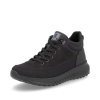 Rieker REVOLUTION je nová řada moderní sportovní obuvi s obrovským důrazem na komfort a pohodlí i při celodenním nošení. Moderní pánská obuv, která nabízí nespočet využití, jak na procházku do přírody, města, na každodenní pochůzky, či večer do baru. Šněrování zajistí snadné obutí a úpravu do maximálního pohodlí. S měkkou vyjímatelnou stélkou bude každý Váš krok změkčen a stélka se maximálně přizpůsobí tvaru Vaší nohy, zároveň ji můžete vyměnit nebo vyvětrat. Nezaskočí Vás ani nepříznivé počasí, Vaše nohy budou chráněny proti vlhkosti nepromokavou membránou svršku materiálu. Do práce i ve volném čase oceníte univerzální černý svršek, který je snadno kombinovatelný s oblečením.