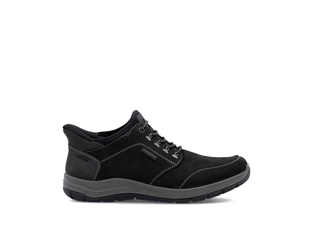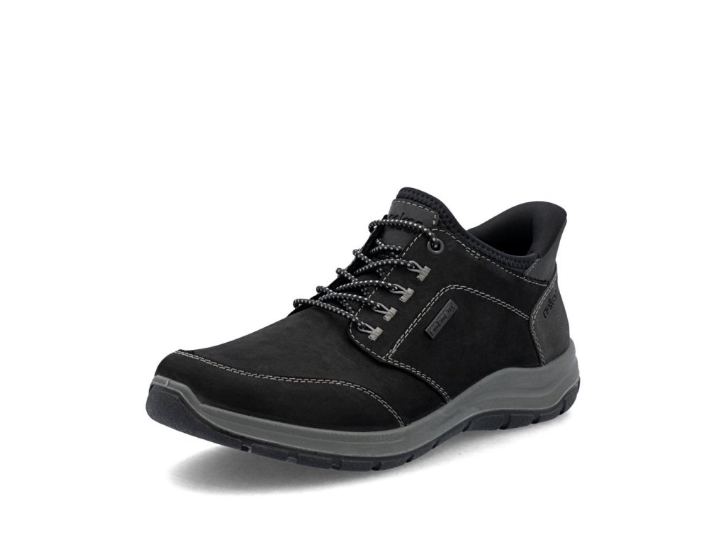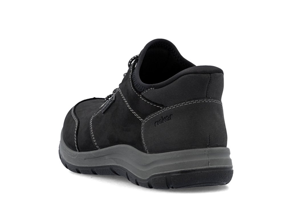 Módní styl v pohodlném provedení – přesně to nabízí tento model obuvi značky RIEKER, který jednoduše nazujete a vyjdete za novým dobrodružstvím. Černý svršek oživuje prošívání světlou nití vytvářející moderní vzhled. Obouvání je rychlé a snadné díky pružnému hornímu lemu a zpevněné patě, šněrování gumičkou má pouze dekorační účel. Dokonalé pohodlí je zajištěno vyjímatelnou měkkou stélkou, která zajišťuje příjemný pocit během nošení a podešev s technologií tlumící nárazy zaručí pohodlí i při celodenním pohybu. Tyto boty RIEKER jsou ideální volba pro muže, kteří hledají styl i komfort bez kompromisů.