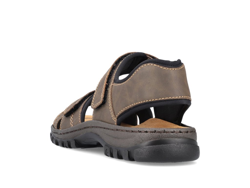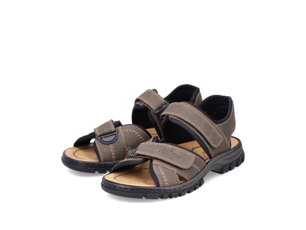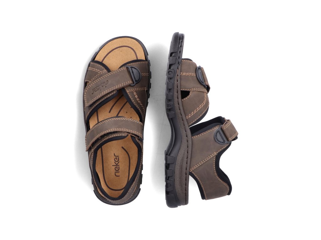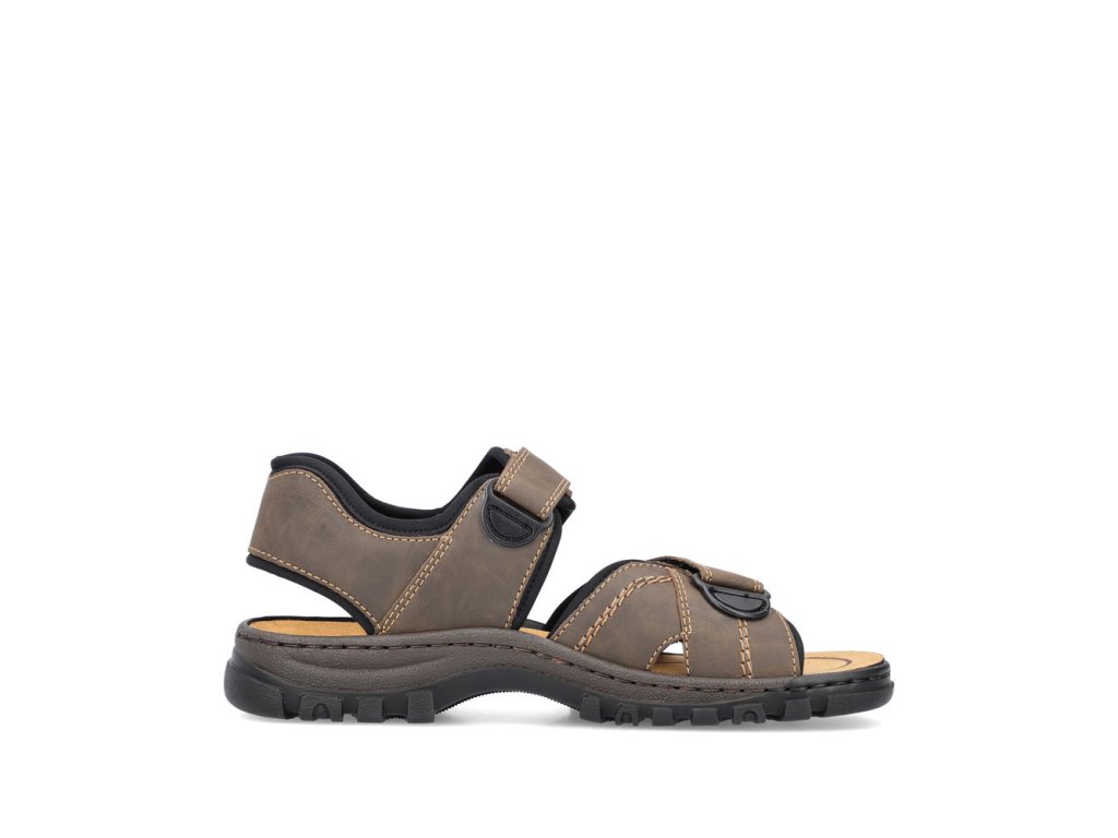 Pánské sandály RIEKER vás jistě nadchnou svým precizním zpracováním svršku hnědé barvy, který dekoruje nápadité prošití a logo značky. Jsou vybaveny pro maximální komfort při nošení pásky se suchým zipem. Podrážka je flexibilní a přizpůsobí se každému vašemu kroku ať už se vypravíte do práce nebo procházku. Díky neutrální hnědé barvě doplněné kontrastním šitím je můžete využít jak pro volný čas, tak do práce.