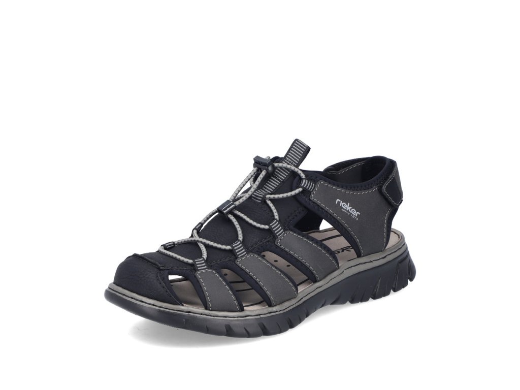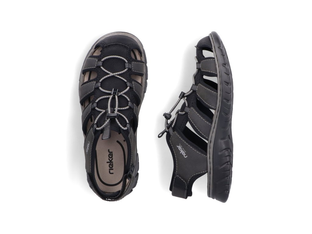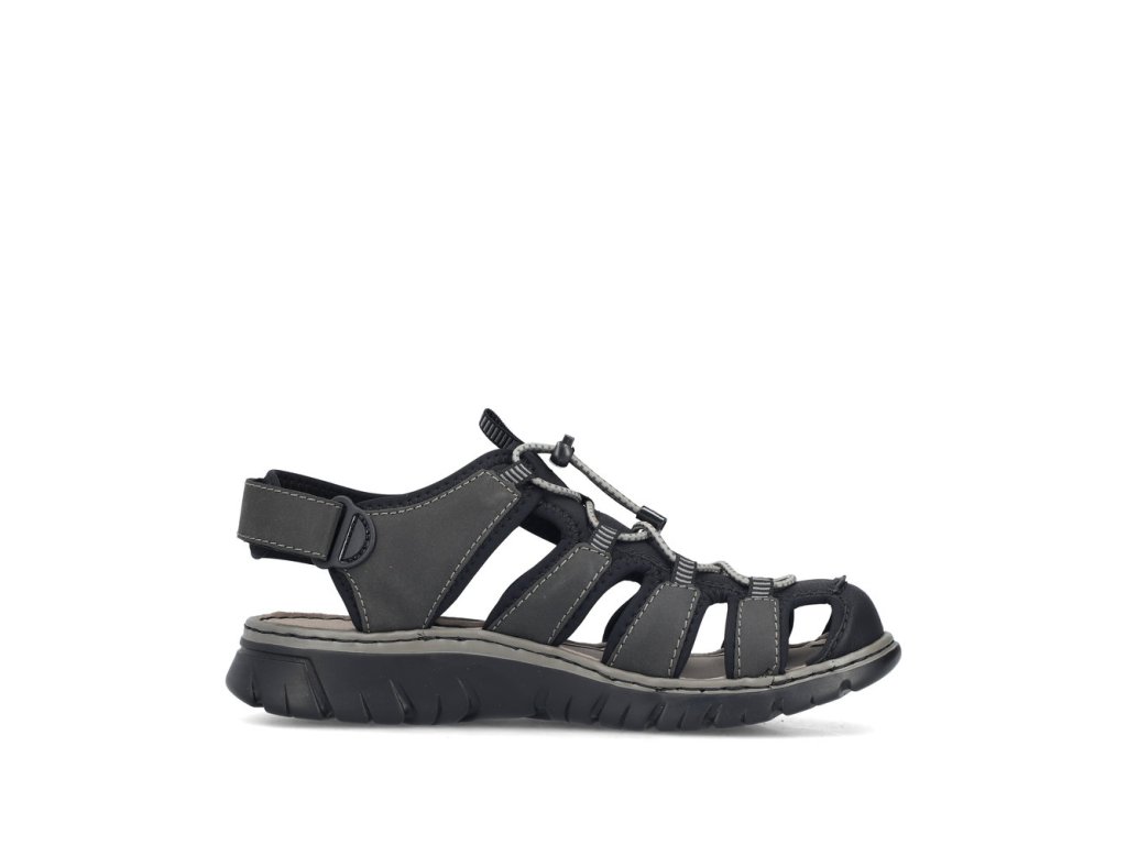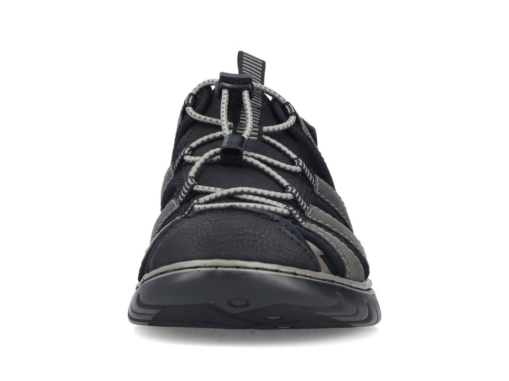 Tyto pánské sandály RIEKER jsou stvořeny pro aktivní muže, kteří chtějí spojit sportovní vzhled s maximálním pohodlím. Dynamicky řešený svršek z více pásků působí moderně a zároveň poskytuje pevnou oporu chodidlu. Pružné šněrování na nártu umožňuje rychlé a přesné přizpůsobení a řemínek se suchým zipem kolem paty usnadní obouvání. O komfort během celého dne se postará komfortní stélka, zatímco flexibilní podešev podpoří přirozený krok. Ideální volba na městské procházky, výlety do přírody i letní dobrodružství – sandály RIEKER vám dodají svobodu pohybu, jistotu a styl v každé situaci.