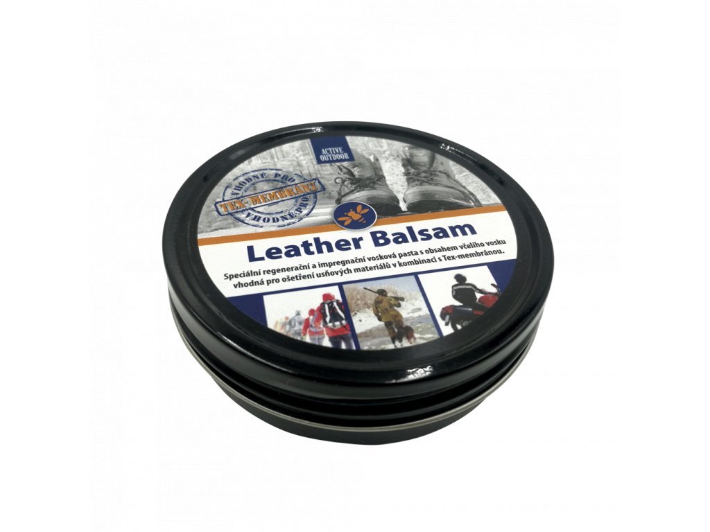 Active Outdoor Leather balsam je speciální regenerační a impregnační vosková pasta na kožené materiály. Změkčuje, zvláčňuje a impregnuje . Leather balsam proniká hluboce mezi usňová vlákna a po nanesení vytváří flexibilní a vodoodpudivý film. Je vhodný pro koženou obuv, která často přichází do styku s vlhkem a vodou. Nesnižuje propustnost pro vodní páry a je proto vhodný pro membrány typu Gore-tex, Sympatex apod. Kůži díky použité kombinaci přírodních vosků a olejů dobře vyživuje, změkčuje a zvláčňuje. Zároveň nezanechává mastný film. Speciální látky obsažené v přípravku pečují o obuv a kožené doplňky po dobu jejich uskladnění tak, aby vypadaly jako nové. Leather balsam dodá materiálu voskovou ochranu proti povětrnostním vlivům. Účinnost se zvyšuje opakovaným použitím.